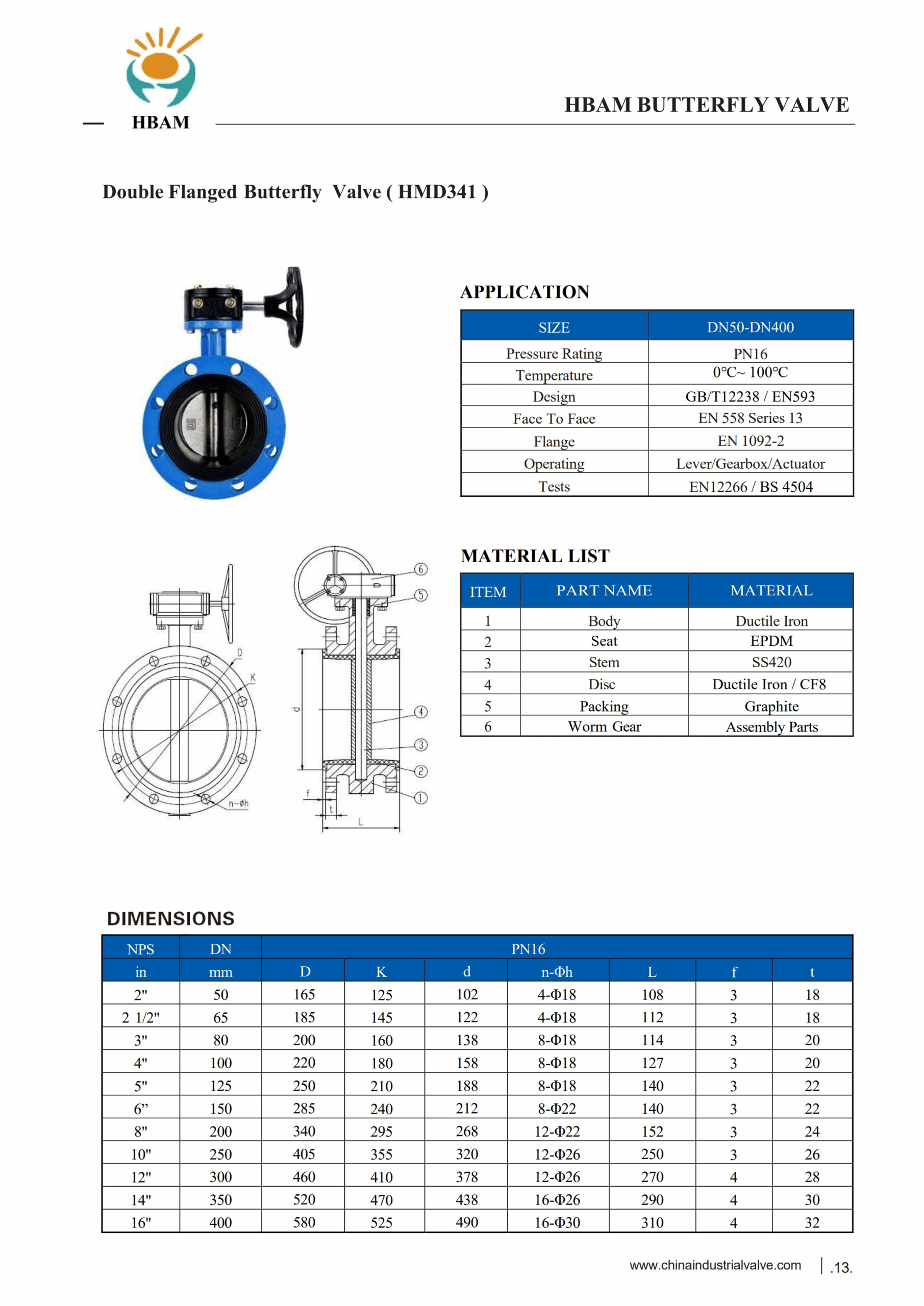 - Design: GB/T12238 / EN593