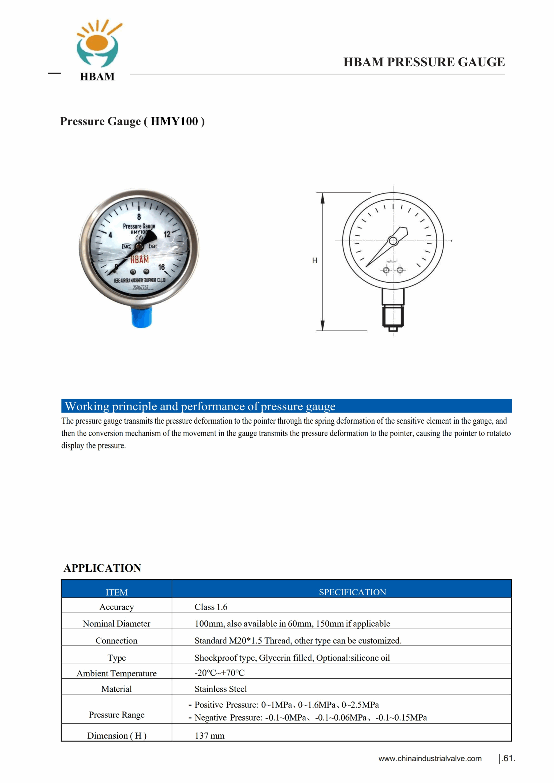 - Pressure Range: 0~1MPa、0~1.6MPa、0~2.5MPa